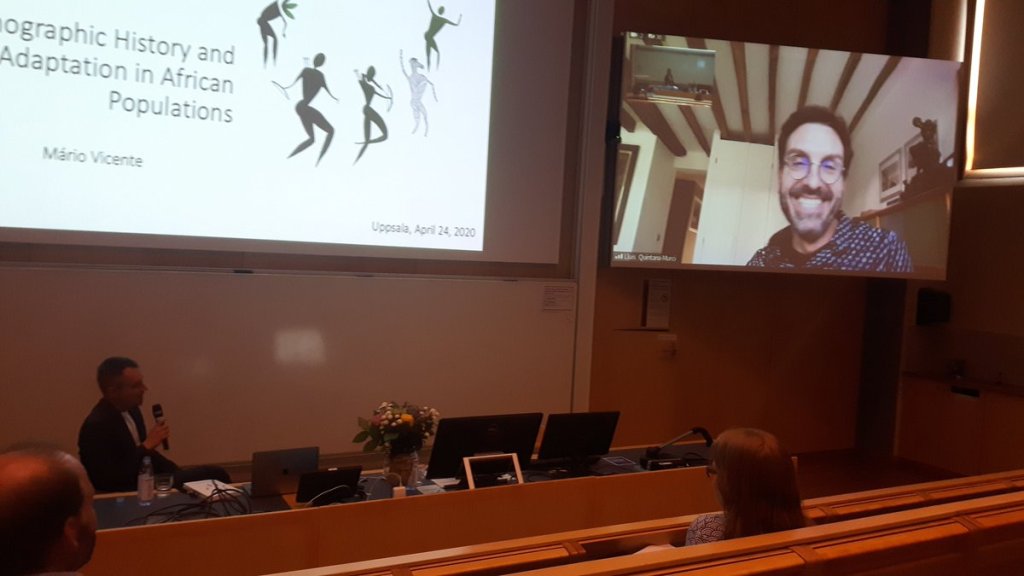 Mario during his PhD defense with Lluis Quintana-Murci as opponent